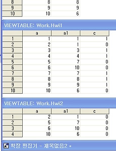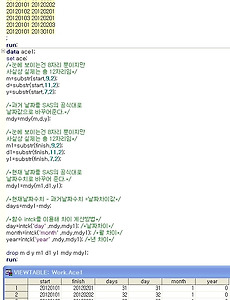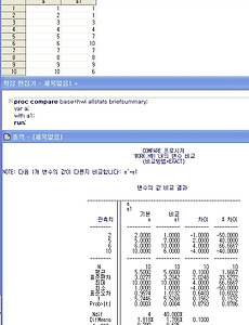 SAS의 산술함수를 이용하여 값을 계산할 수가 있다. 산술함수 설명 ABS(argument) 인수의 절대값을 계산 MAX(argument, argument, argument,…) 인수들 중 최대값을 계산 MIN(argument, argument, argument,…) 인수들 중 최소값을 계산 EXP(x) 인수만큼 e의 거듭제곱 계산. e는 자연로그의 밑. 값은 약 2.71828 GAMMA(α) 감마 함수를 계산 감마함수는 GAMMA(α)=(α-1)! LOG(argument) 자연로그값을 계산 LOG10(argument) 상용로그값을 계산 LOG2(argument) 밑이 2인 로그값을 계산 예를 들어 보자. a=abs(-9); a는 -9의 절대값인 9가 된다. b=min(1,3,5); b는 1, 3, 5 ..